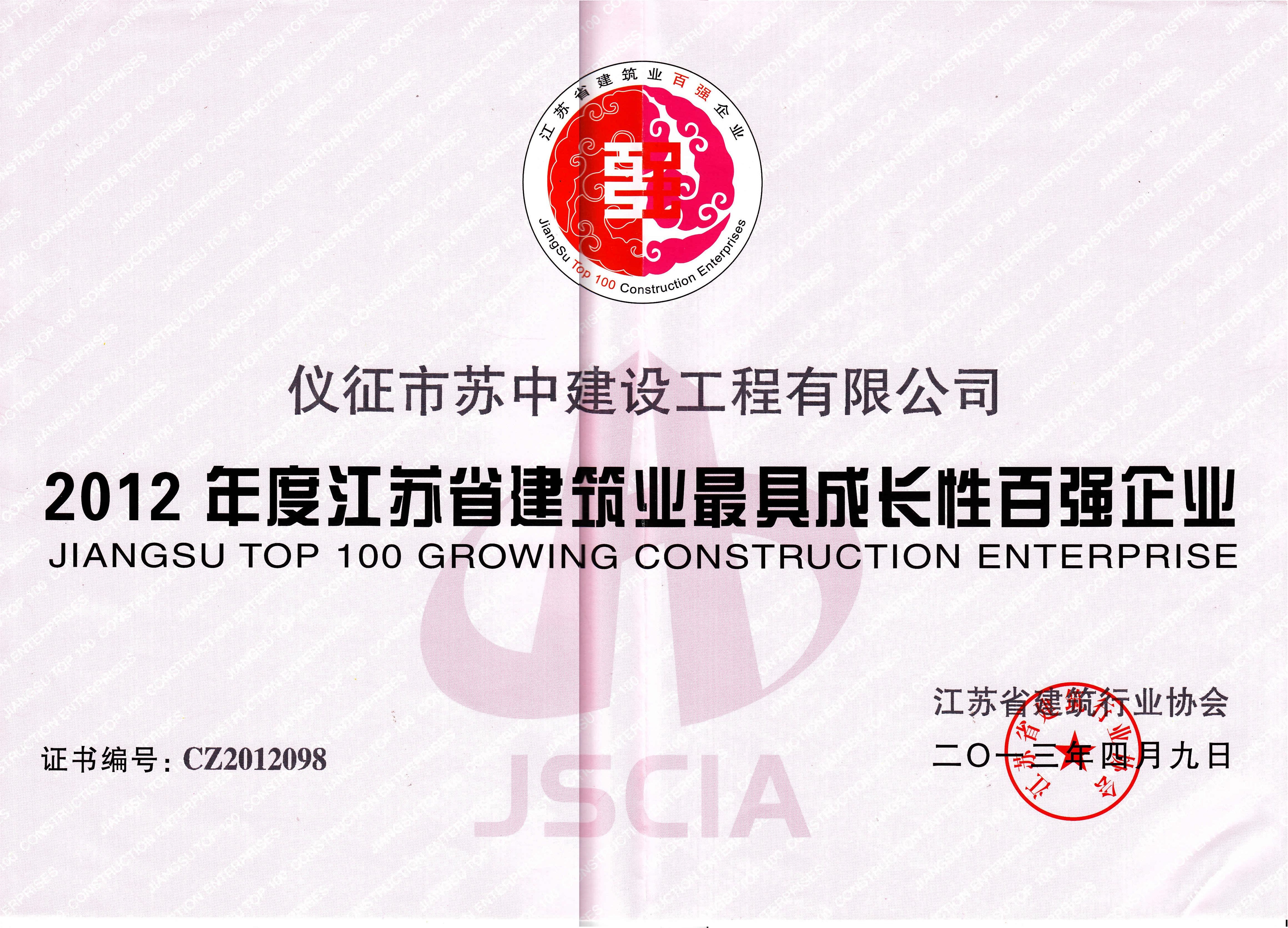 2012江蘇建筑業(yè)最具成長(zhǎng)性…