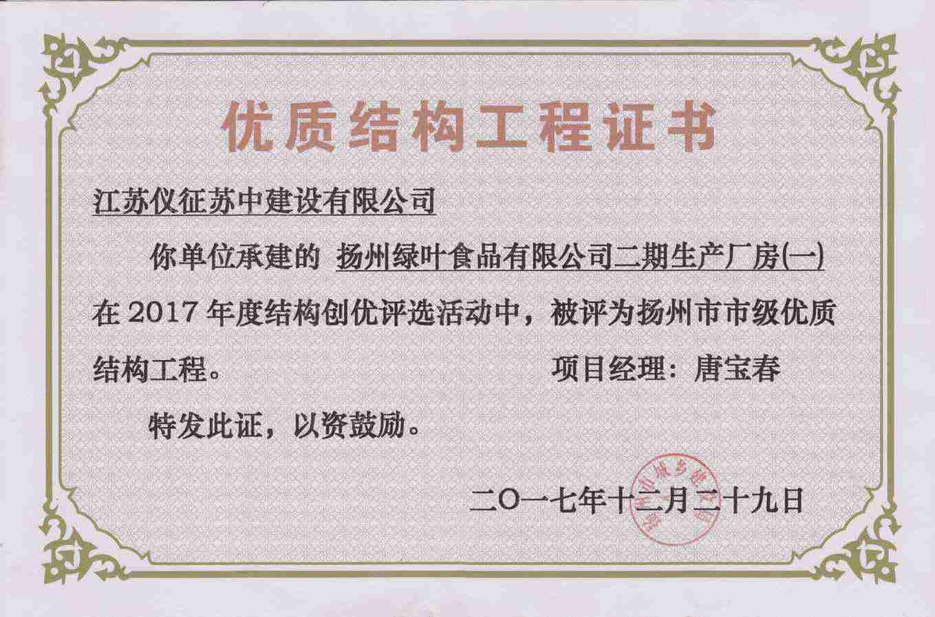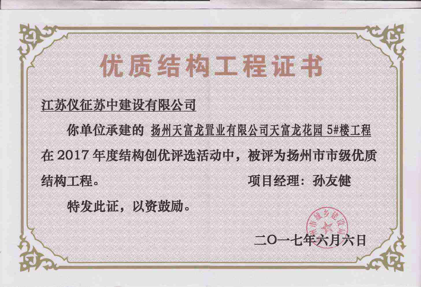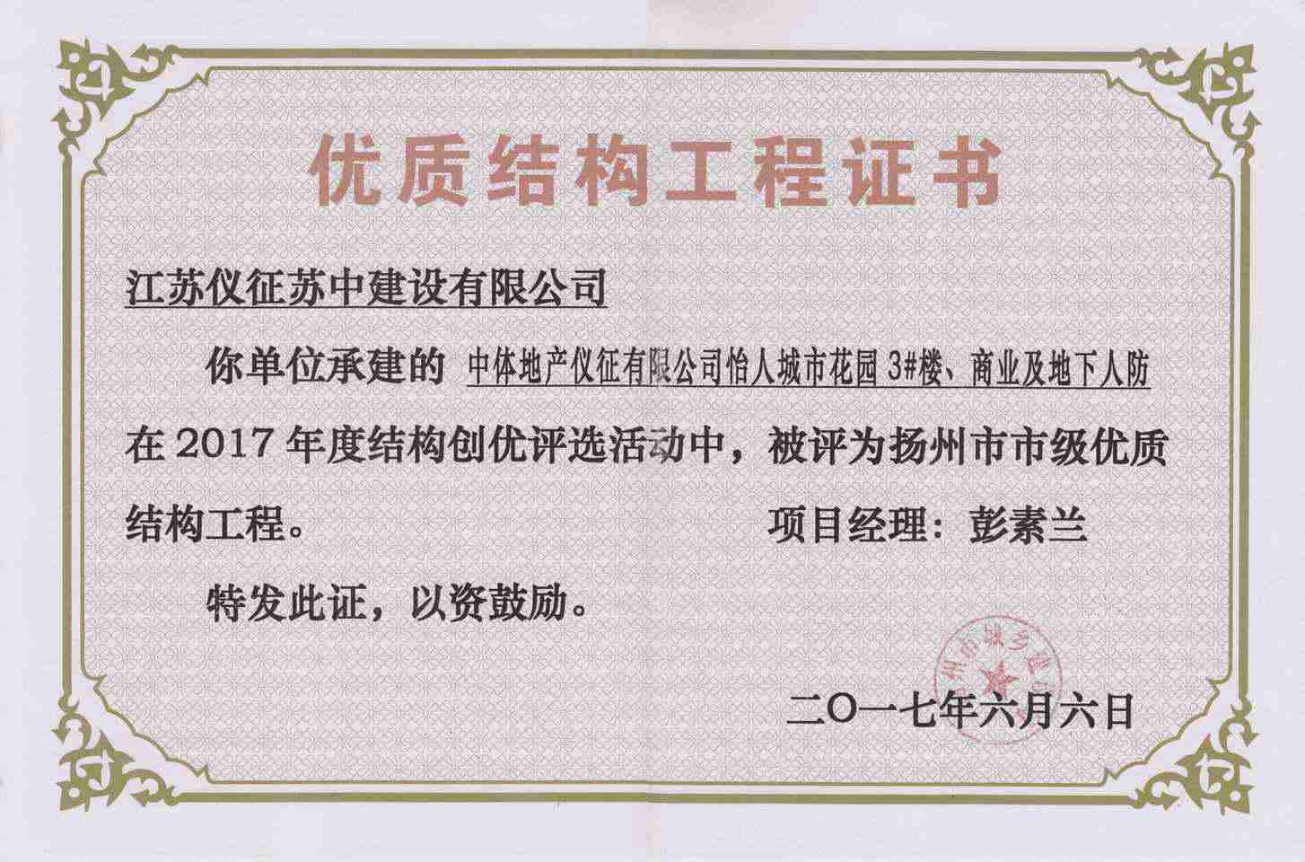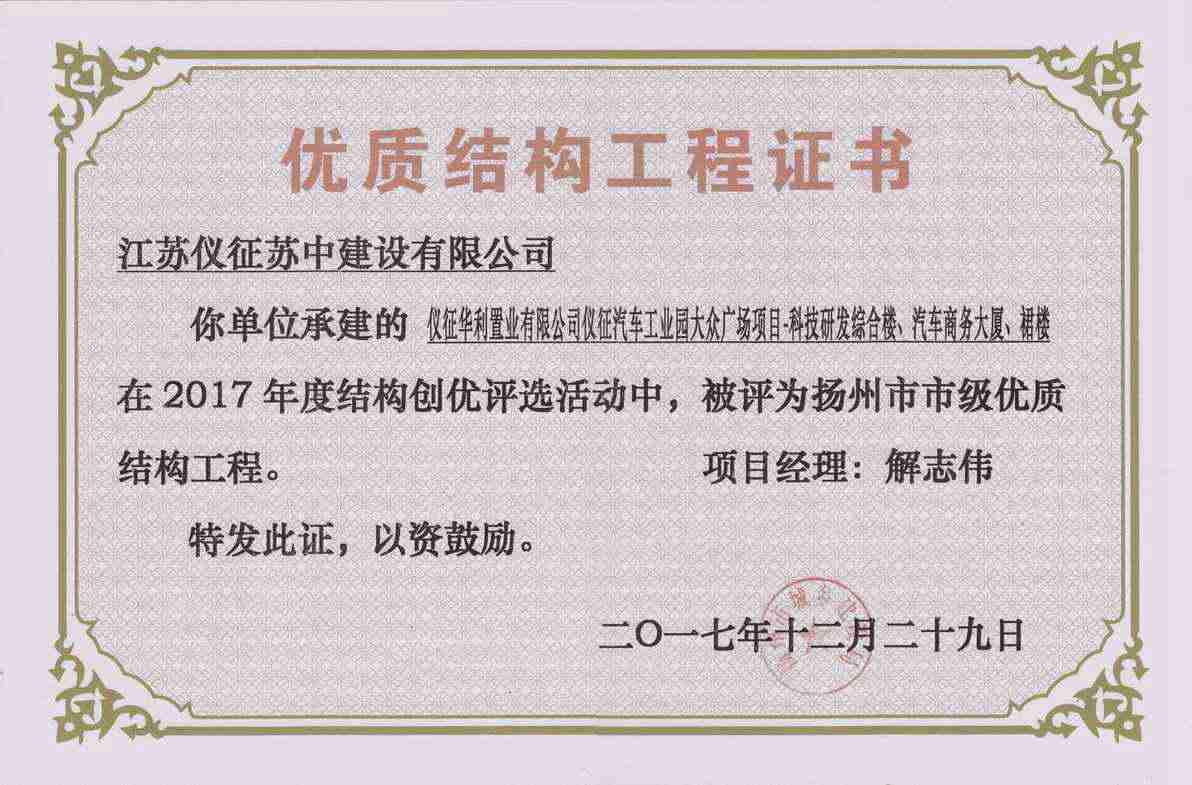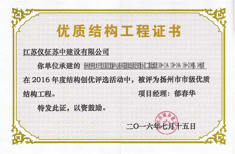 揚(yáng)州市優(yōu)質(zhì)結(jié)構(gòu)工程