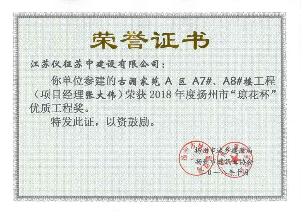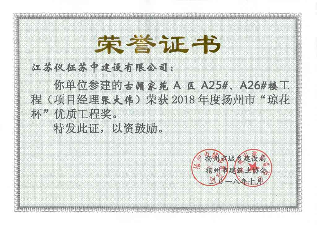 揚(yáng)州市優(yōu)質(zhì)結(jié)構(gòu)工程