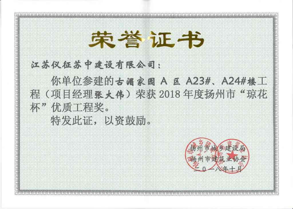 2018年度揚(yáng)州市瓊花杯優(yōu)質(zhì)…