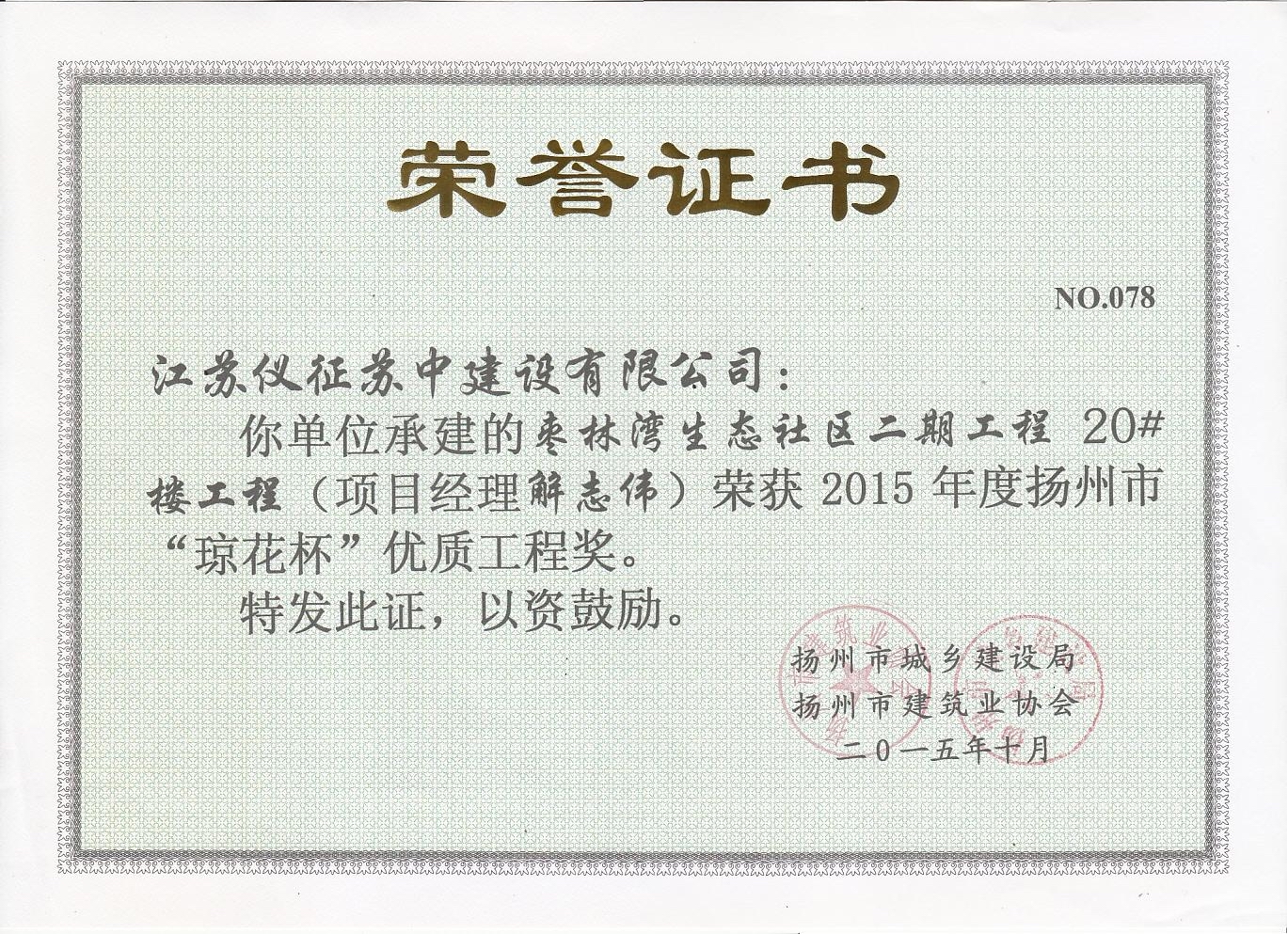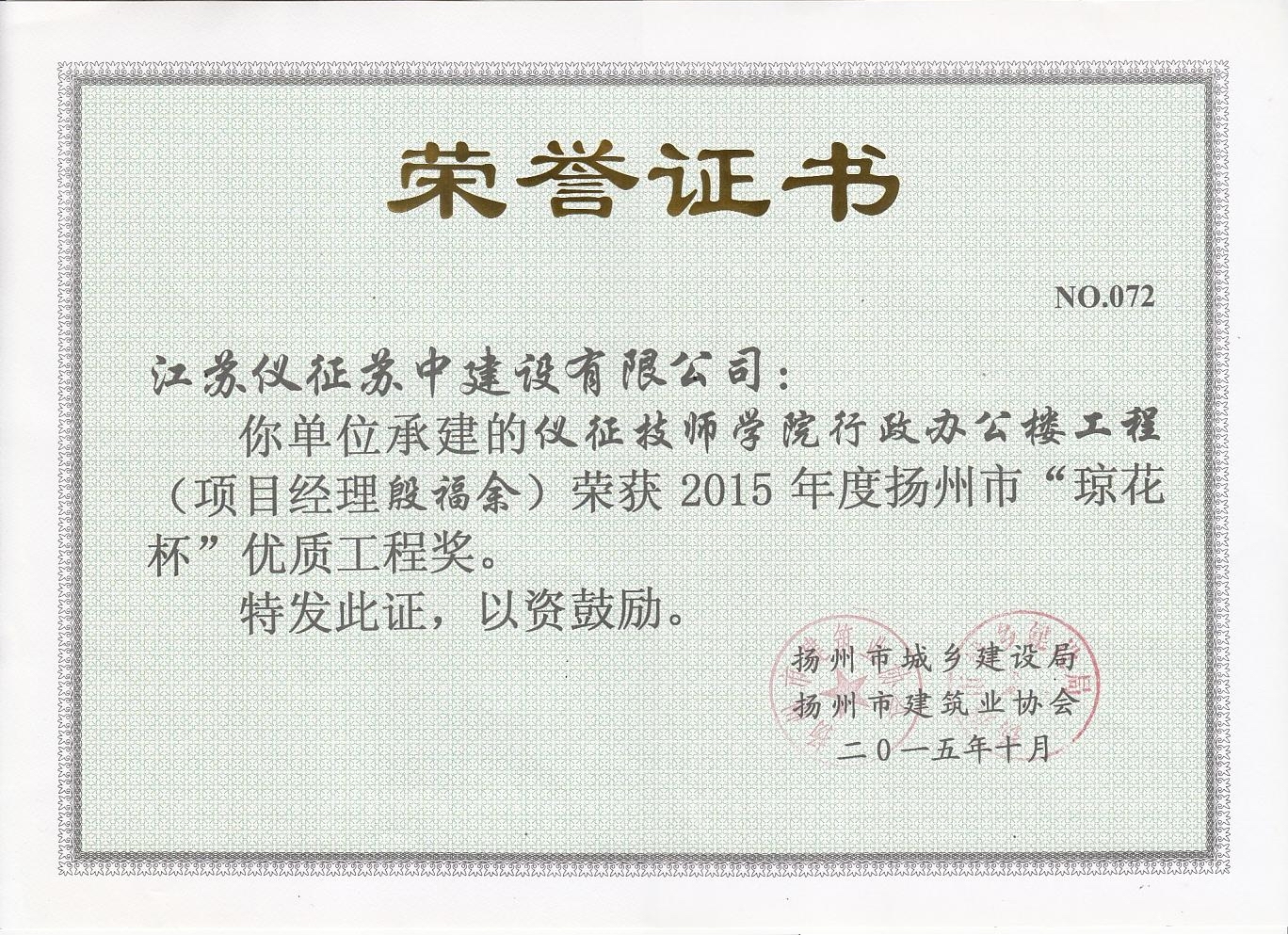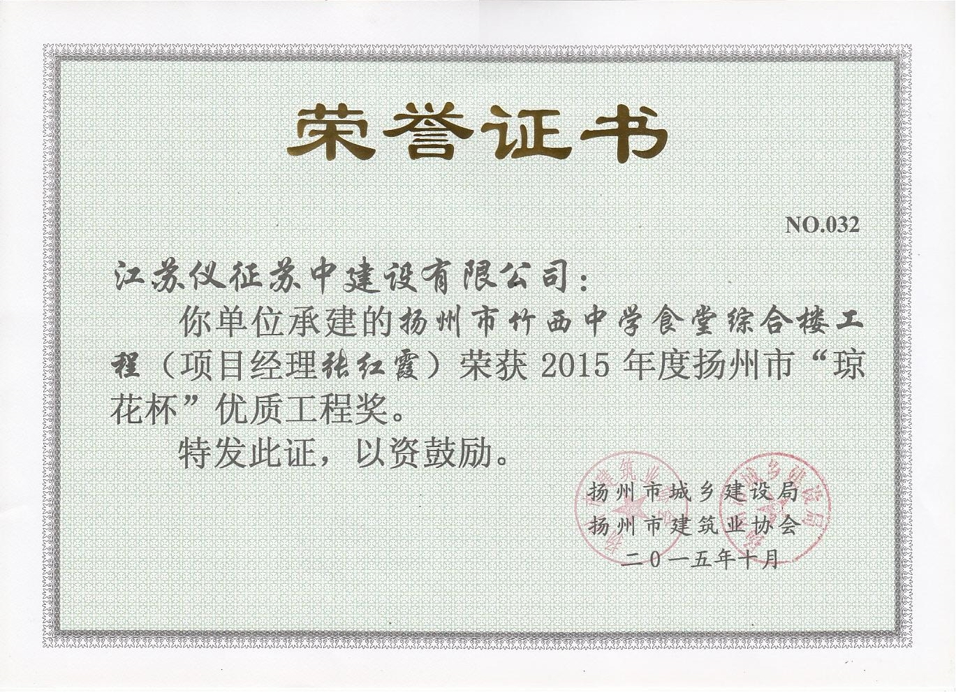 2015年度揚(yáng)州市瓊花杯優(yōu)質(zhì)…