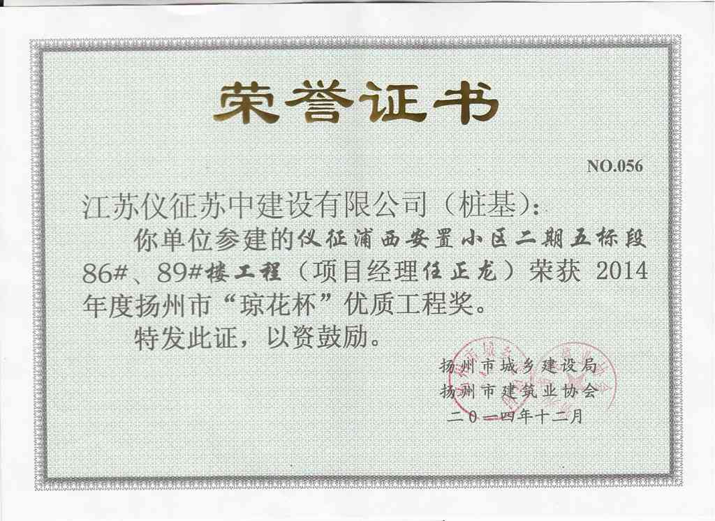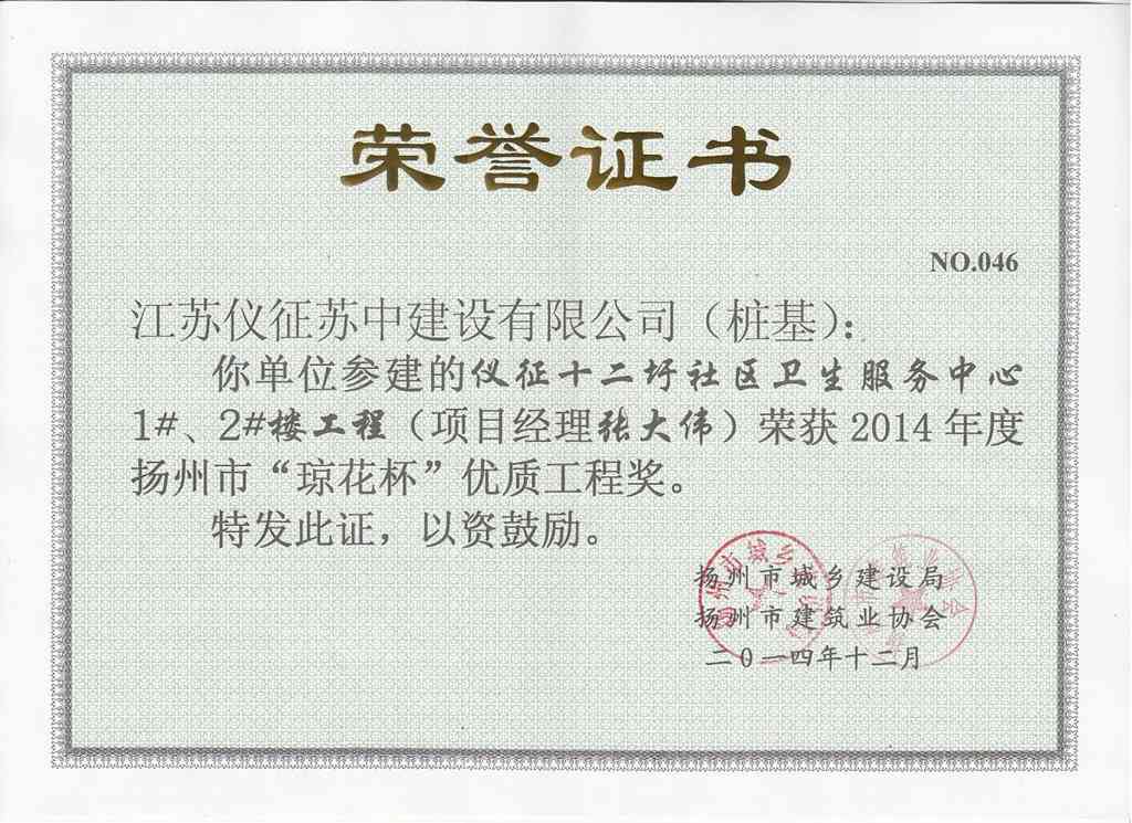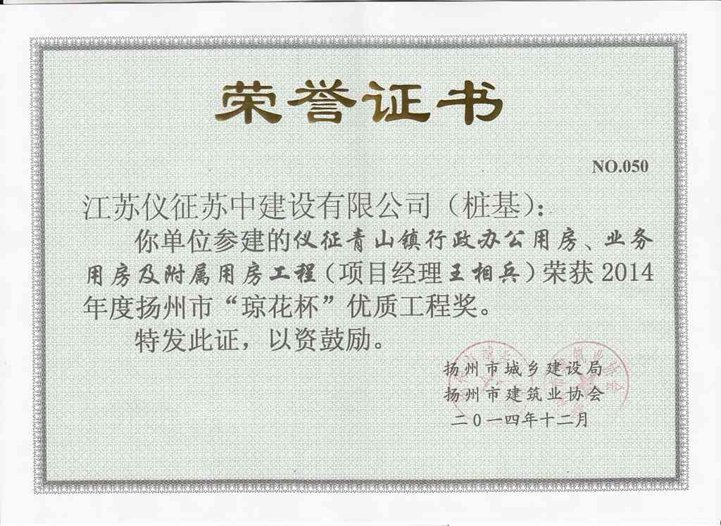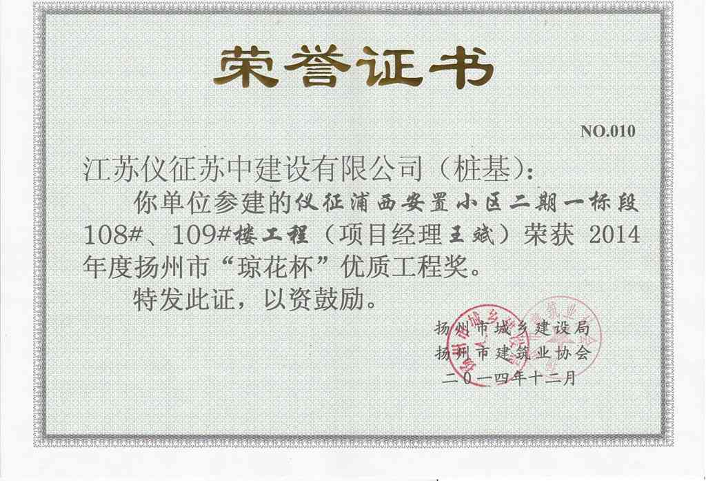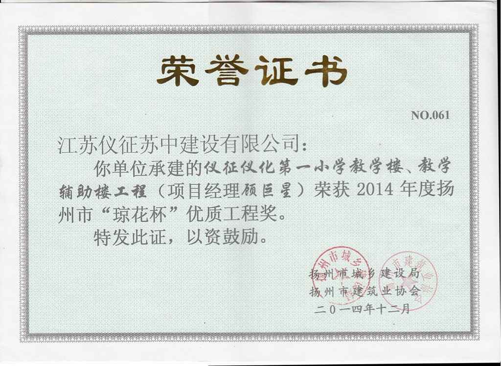 2014年度揚(yáng)州市瓊花杯優(yōu)質(zhì)…
