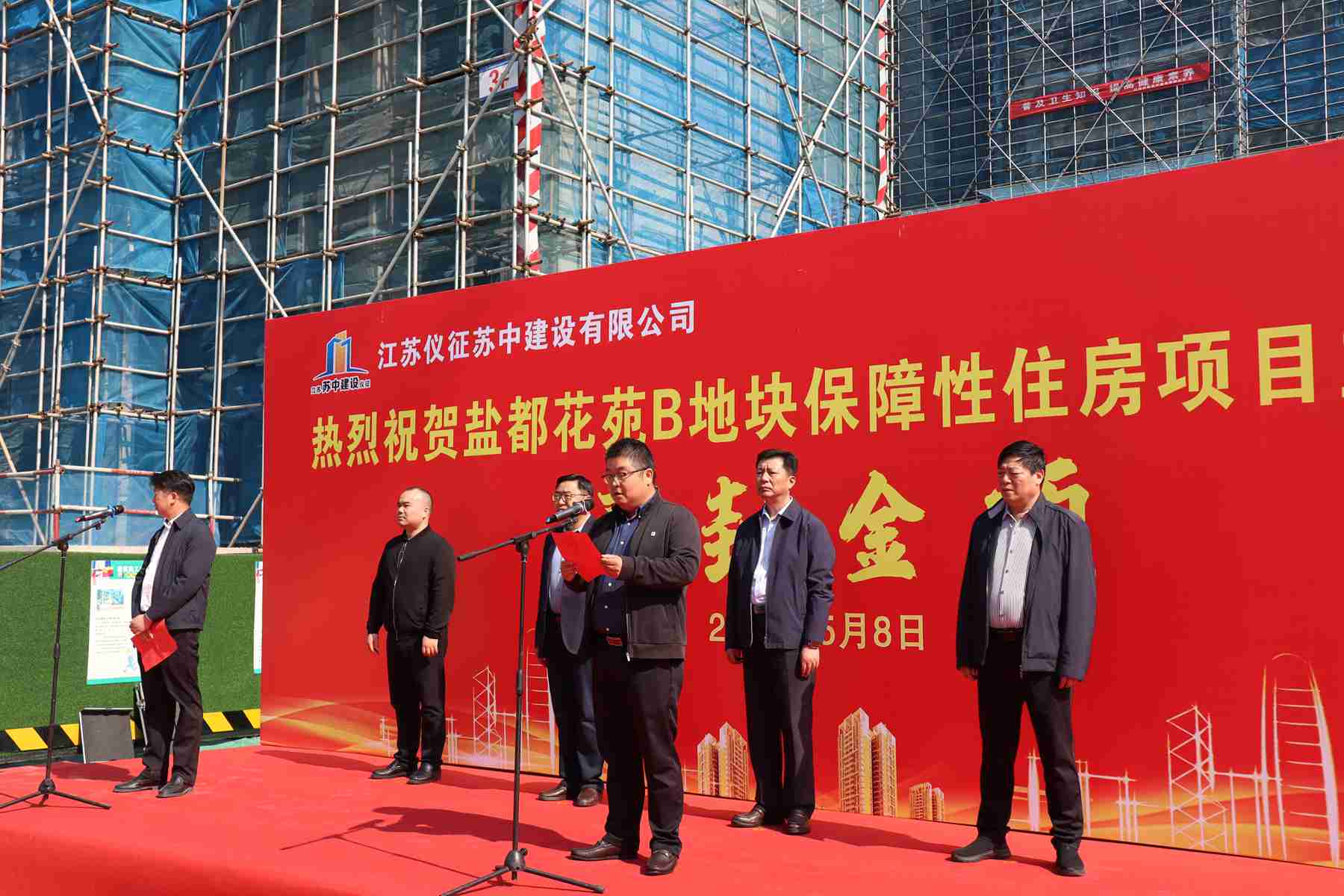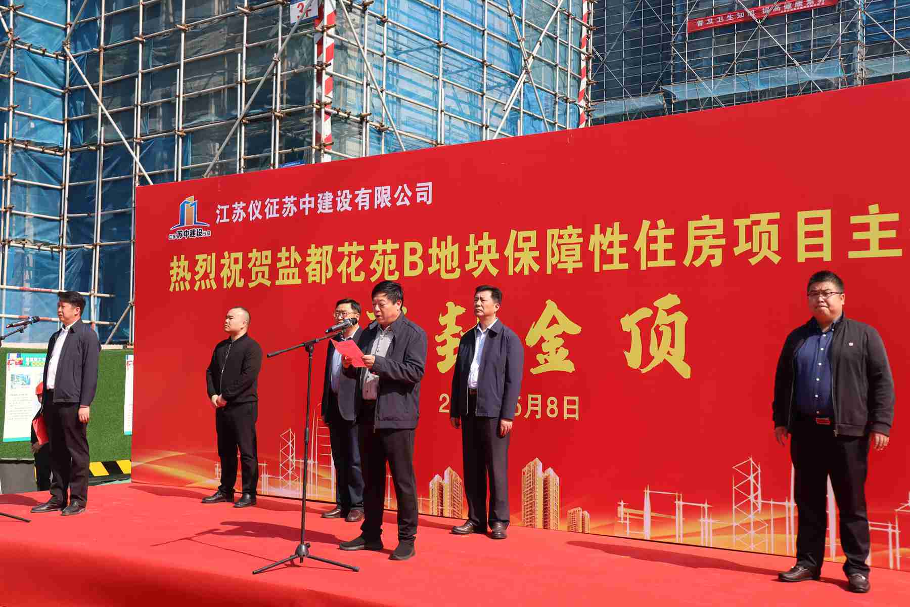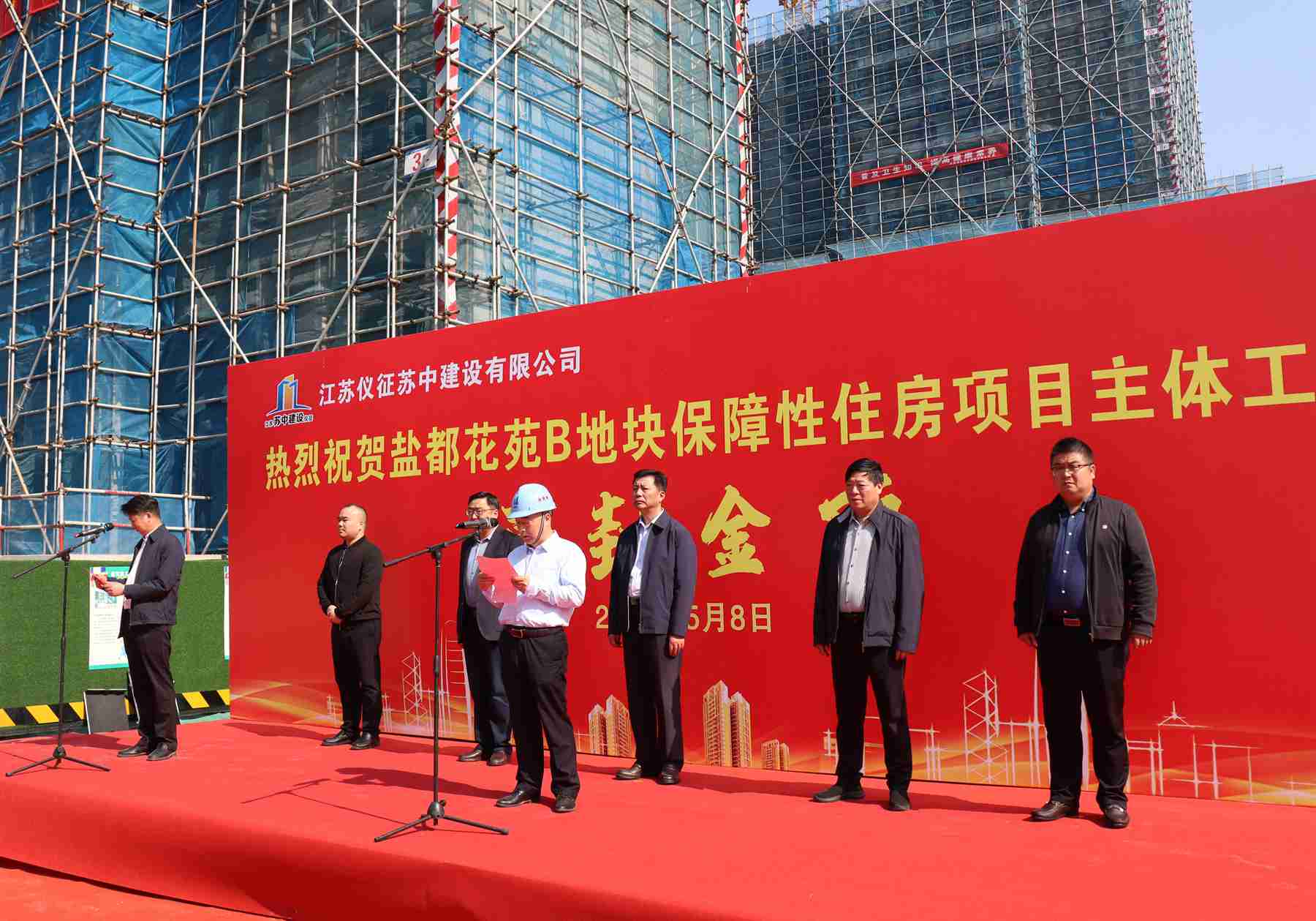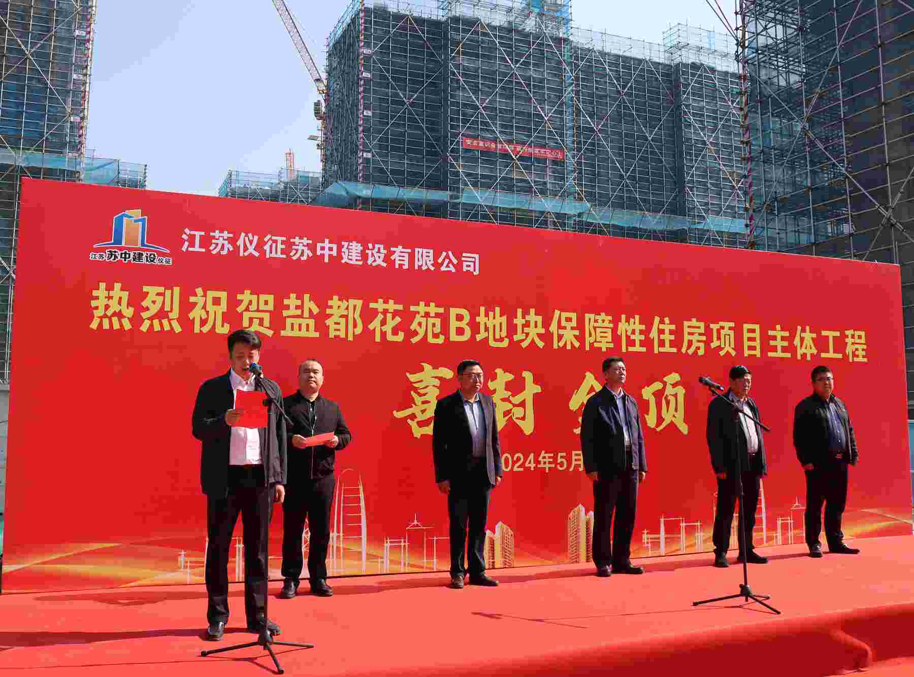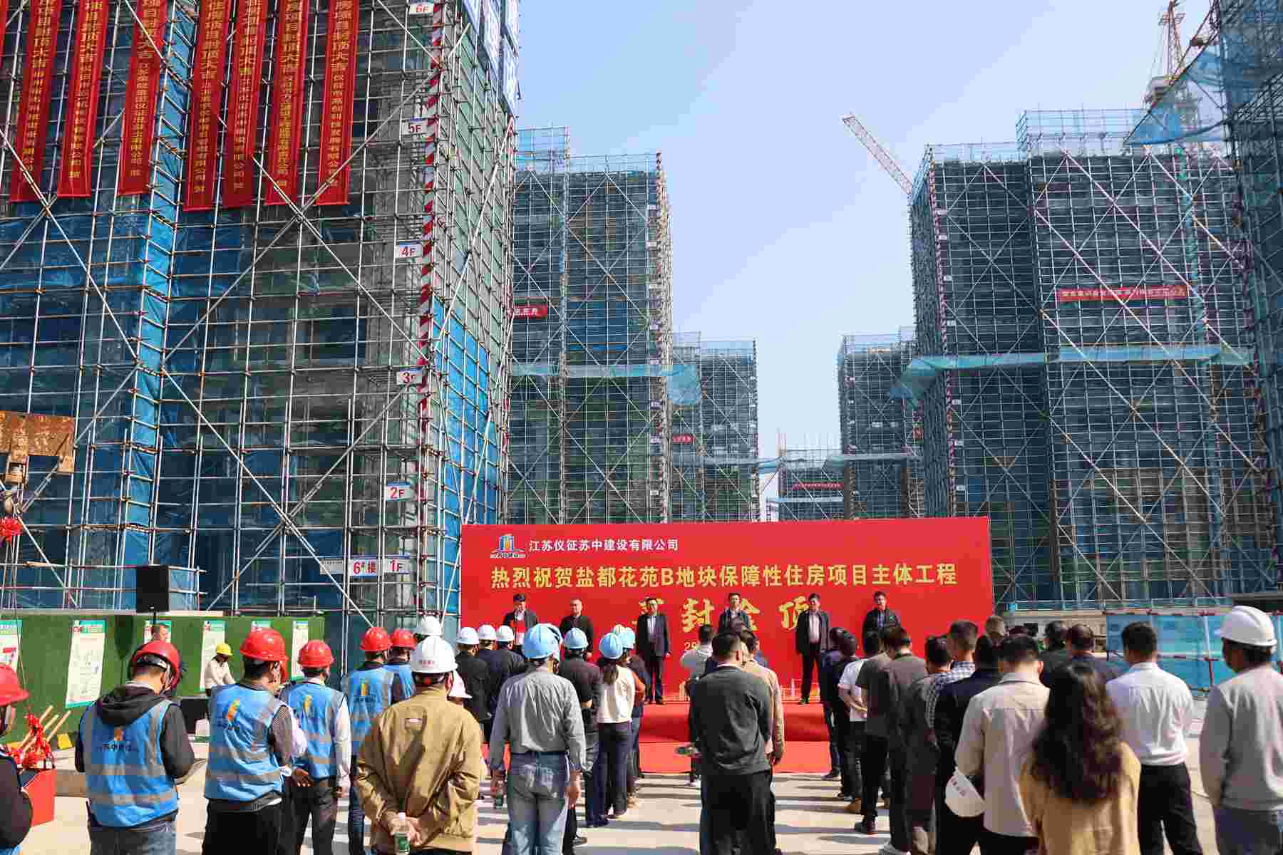 今天上午,在公司承建的鹽都花苑B地塊保障性住房項(xiàng)目現(xiàn)場(chǎng)舉行了隆重的主體工程封頂儀式。