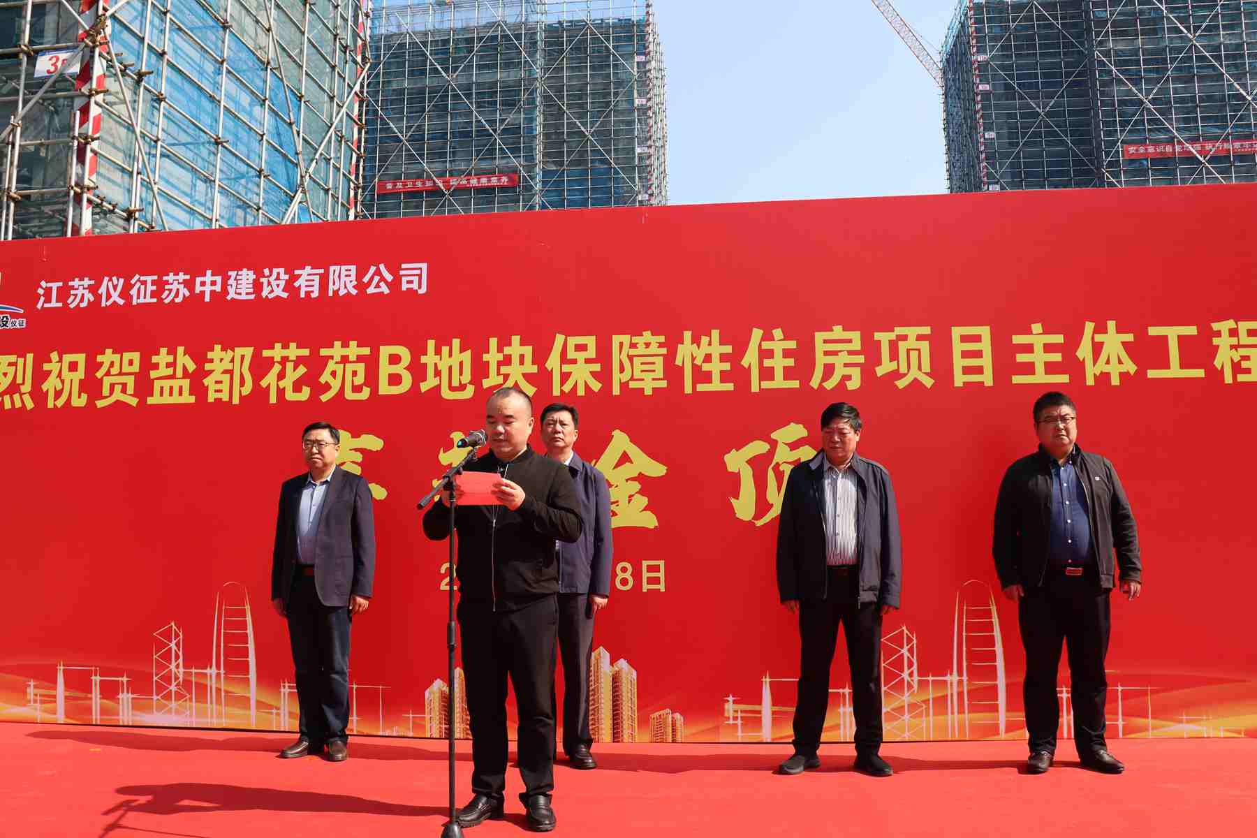 最后,儀征市政府黨組副書(shū)記、開(kāi)發(fā)區(qū)黨工委副書(shū)記、管委會(huì)主任丁雪海宣布封頂儀式開(kāi)始。