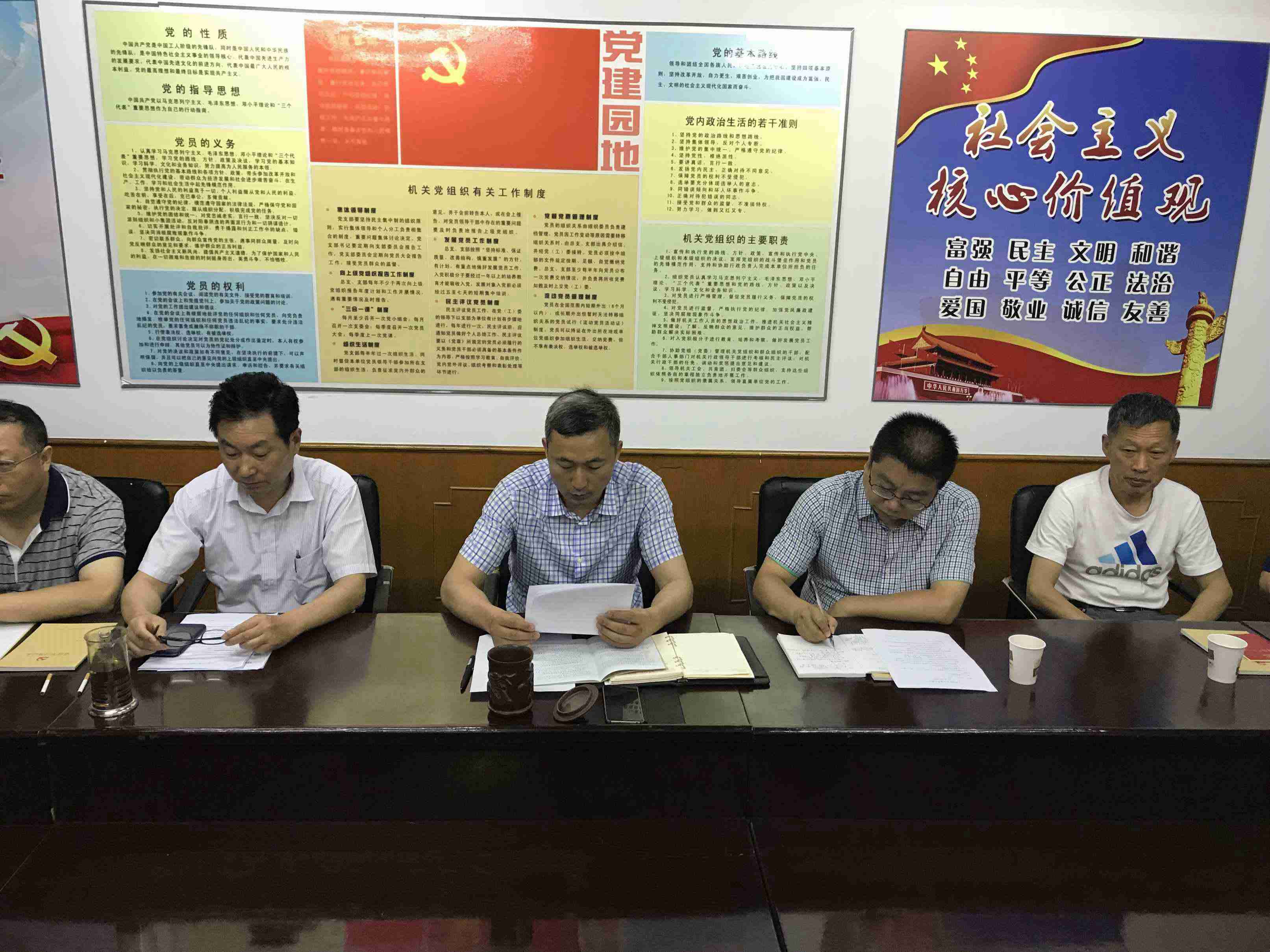 2018年7月1日下午四點(diǎn)半,在建黨97周年這樣的特殊日子里,公司黨支部召開(kāi)了黨支部大會(huì),會(huì)議內(nèi)容主要是:1、簡(jiǎn)要介紹今年4月份新轉(zhuǎn)入的4名黨員(劉云飛、楊雪、姚冬雪、李香宜)基本情況;2、簡(jiǎn)要介紹入黨積極分子(李樂(lè)清)基本情況,明確培養(yǎng)聯(lián)系人責(zé)任;3、公布2018年度黨費(fèi)收繳情況;4、金玉平書(shū)記和全體黨員一起學(xué)習(xí)《***************************總書(shū)記治國(guó)理政新理念新思想新戰(zhàn)略黨員干部應(yīng)知應(yīng)會(huì)學(xué)習(xí)讀本》,通過(guò)金書(shū)記的講解,大家感到受益匪淺,為深入學(xué)習(xí)***************************新時(shí)代中國(guó)特色社會(huì)主義思想提供較好幫助。
