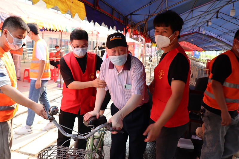 根據(jù)社區(qū)統(tǒng)一安排和分工,所有志愿者各就其位,各司其職,很快進(jìn)入到忙碌的工作狀態(tài),有序開展秩序維護(hù)、測溫驗(yàn)碼、信息登記及服務(wù)保障等工作。從清晨到傍晚,大家連續(xù)工作長達(dá)12個(gè)小時(shí),盛夏酷暑,烈日炎炎,當(dāng)室外溫度逐漸升高時(shí),志愿者們個(gè)個(gè)汗流浹背,酷熱難耐,卻沒有一個(gè)人叫苦,沒有一個(gè)人退縮,充分體現(xiàn)了蘇中建設(shè)志愿者的使命擔(dān)當(dāng)。在全體醫(yī)護(hù)人員、社區(qū)及志愿者的共同努力下,沙河村二輪全員核酸檢測采樣工作于當(dāng)日順利結(jié)束。