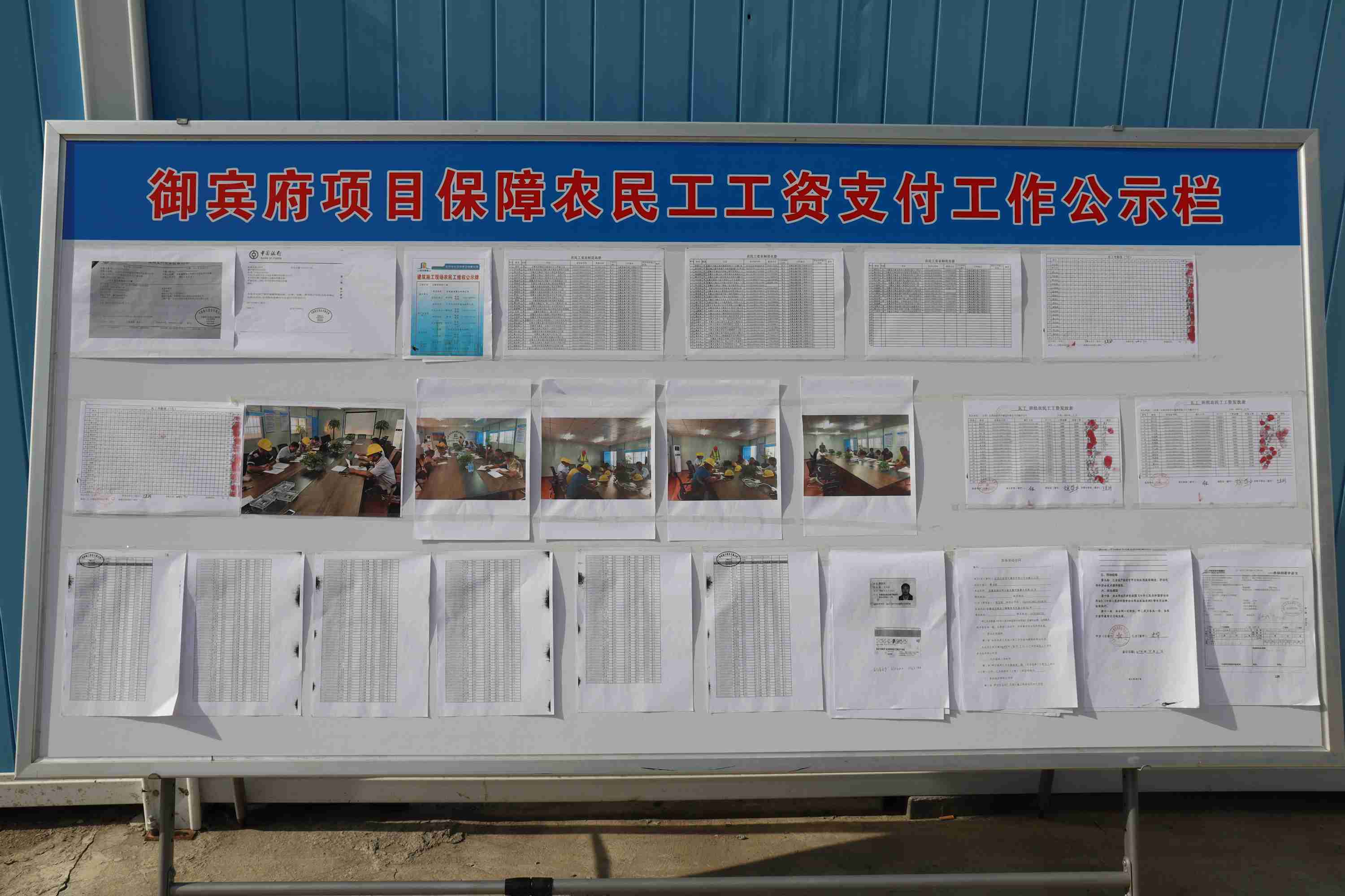 為迎接本次考核,項(xiàng)目部將匯報(bào)材料制作成PPT,詳細(xì)介紹了保障農(nóng)民工工資發(fā)放情況;提前準(zhǔn)備了詳實(shí)的內(nèi)頁資料,將月工資發(fā)放記錄、銀行流水、實(shí)名制考勤及勞動(dòng)用工合同等內(nèi)容制作成宣傳展板,供專家組成員查看。