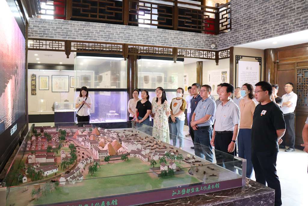 黨員同志首先參觀江上鹽都鹽運文化展示館,儀征十二圩,曾是清同治年間兩淮鹽運總棧所在地,長江最大食鹽轉運中心,專司湘鄂贛皖蘇五省分銷,享有“江上鹽都”美譽。黨員同志在這里感悟篳路藍縷的創(chuàng)業(yè)文化,抱團共進的集體文化。