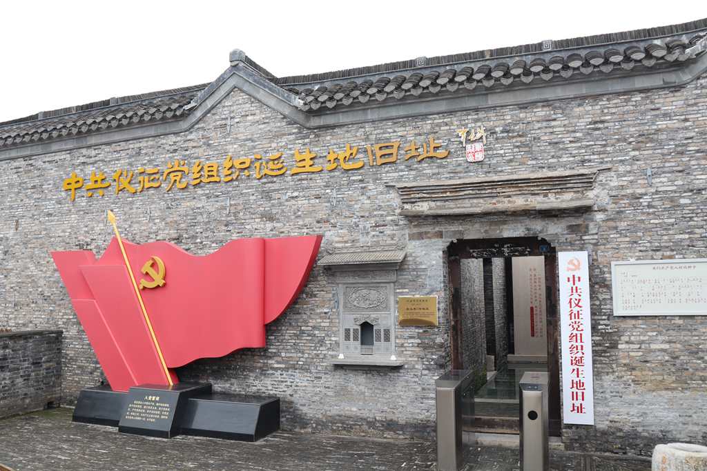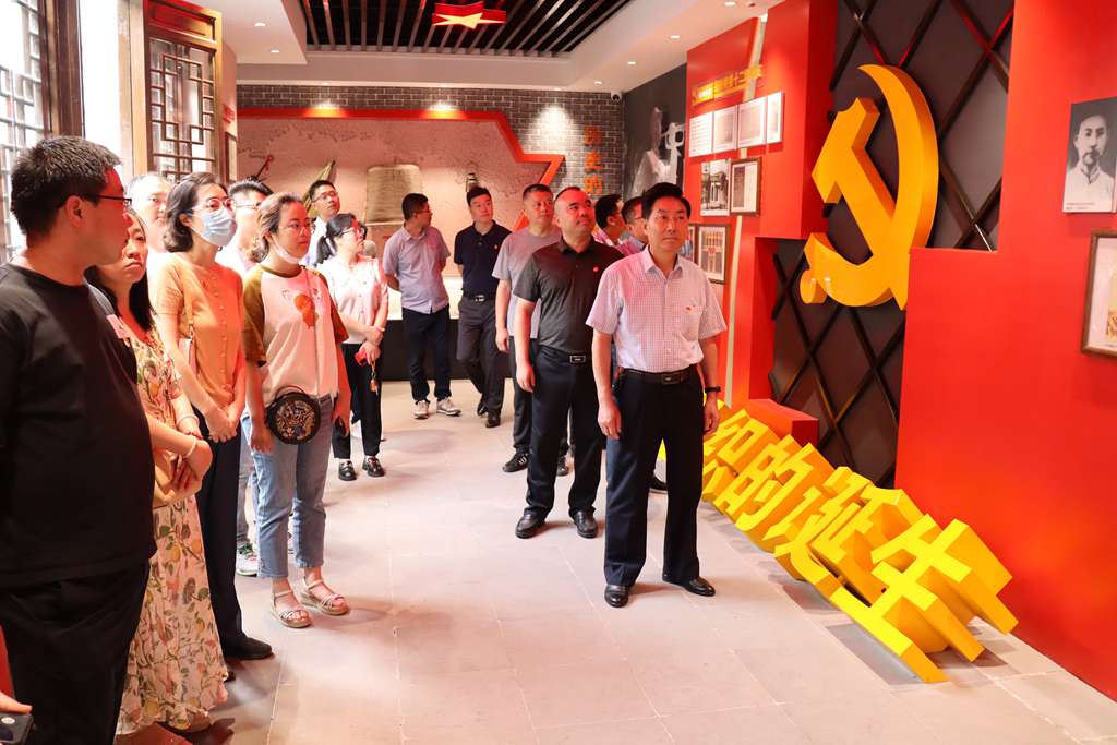 隨后,黨員同志懷著崇敬的心情,來到中共儀征黨組織誕生地。1926年1月,中共上海地委丹陽獨立支部派中共黨員郭成昌同志以商人身份出現(xiàn)在十二圩,開設“三行辦事處”,以做鹽場運輸、勞務生意為掩護進行活動,秘密發(fā)展黨組織,“三行辦事處”就設在義和泰錢莊的后院。同年4月3日十二圩鹽船工人支部成立,黨員9名,該組織是儀征乃至揚州地區(qū)最早的共產(chǎn)黨支部,它點燃了廣大勞工、知識分子和愛國人士反帝反封建的熱情。在中共儀征黨組織誕生地舊址建立的紀念館現(xiàn)在是第二批江蘇省100個紅色地名、揚州市愛國主義教育基地。黨員同志通過史料陳列、影像資料等學習感受革命前輩對黨絕對忠誠的政治品格和不怕犧牲的大無畏精神。