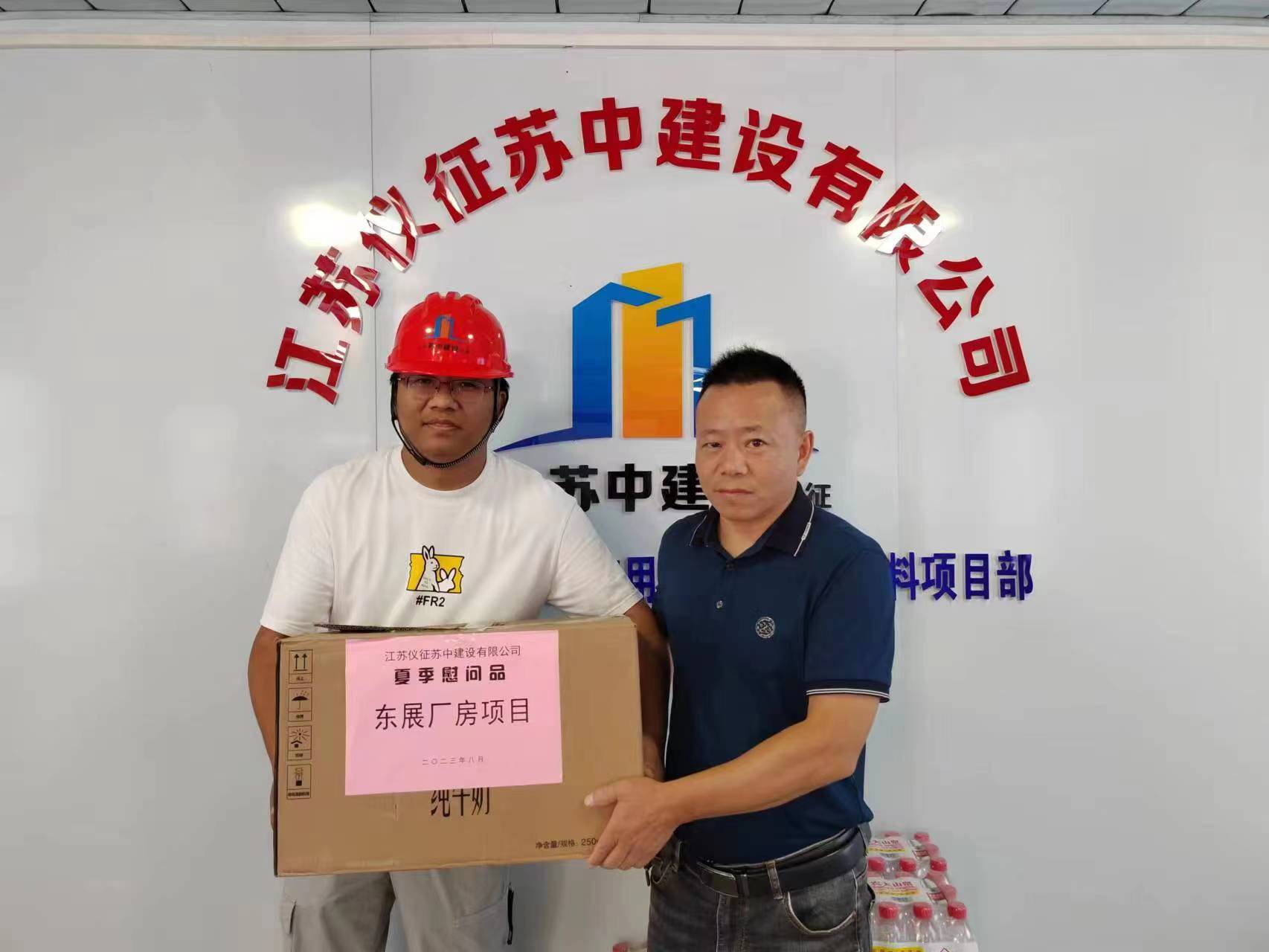 為切實(shí)保障施工一線職工的生命安全和身體健康,傳遞公司領(lǐng)導(dǎo)對(duì)職工的關(guān)心關(guān)愛,營造良好和諧的工作氛圍,公司黨支部、安全管理部于2023年8月4日聯(lián)合開展“夏季送清涼”慰問活動(dòng),先后慰問了鹽都花苑B地塊、紅旗花苑B區(qū)、揚(yáng)州GZ313地塊等7個(gè)在建項(xiàng)目。